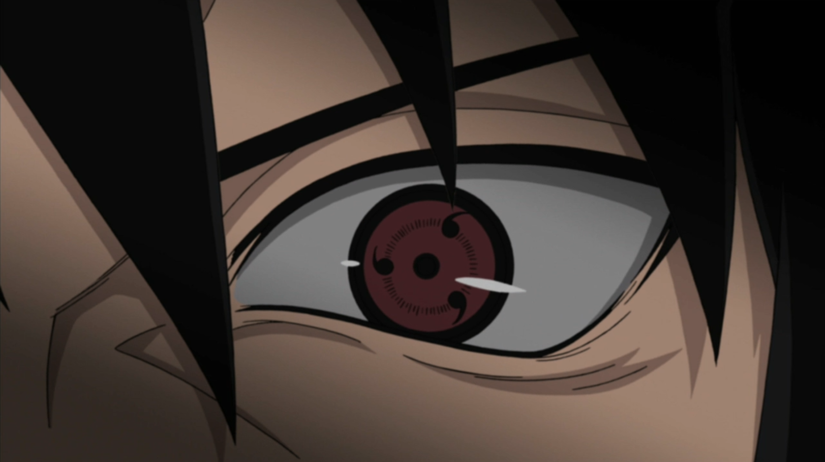 Sasuke dengan tahap sharingan awal (kanan) dan kedua (kiri).